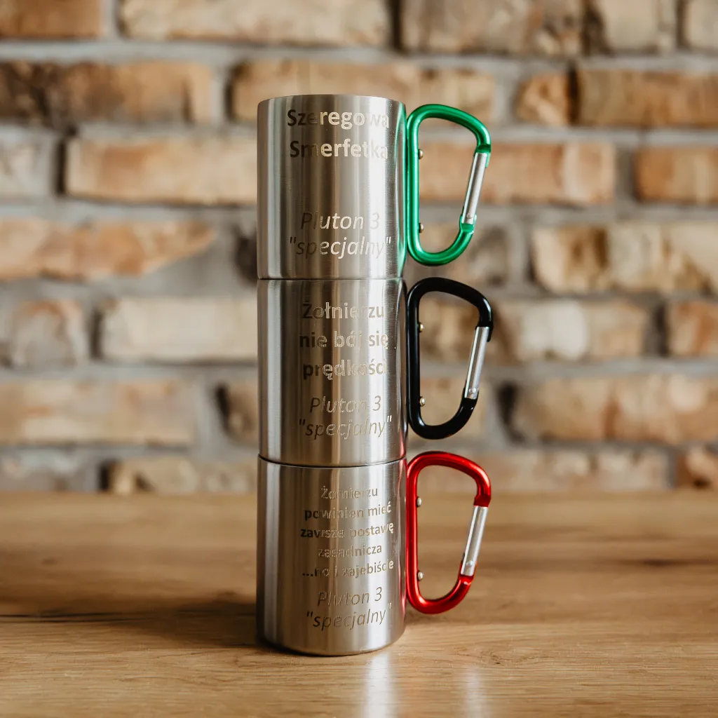 Kubek metalowy z karabińczykiem to niezwykłe połączenie funkcjonalności i stylu, które sprawi, że Twój ulubiony napój będzie towarzyszyć Ci w każdej sytuacji. To absolutny must-have dla wszystkich, którzy cenią sobie styl, funkcjonalność i personalizację. Dzięki swoim metalowym podwójnym ściankom, utrzymuje zarówno zimne jak i ciepłe napoje w odpowiedniej temperaturze przez dłuższy czas niż zwykłe kubki a przypadkowe dotknięcie zewnętrznej ścianki nie sprawi, że się poparzymy.